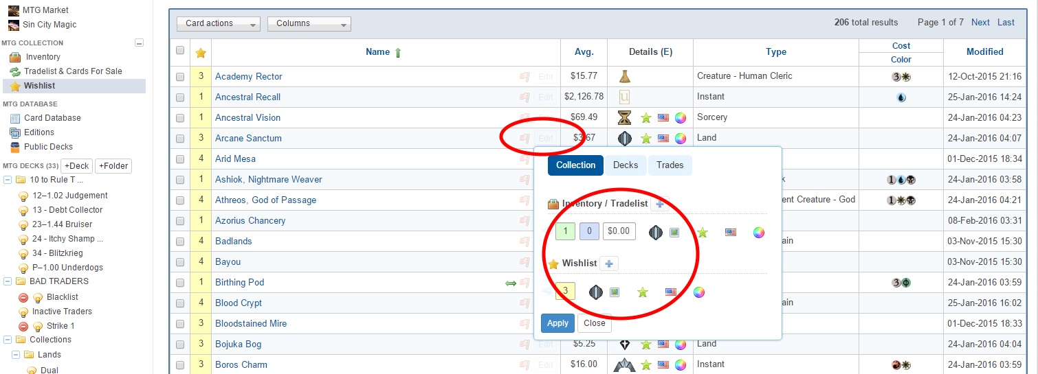You can quickly change your inventory/wishlist/tradelist counts by clicking on the card's [Edit] button in your wishlist (or any of your other lists, for that matter). See attached image.[/Edit]